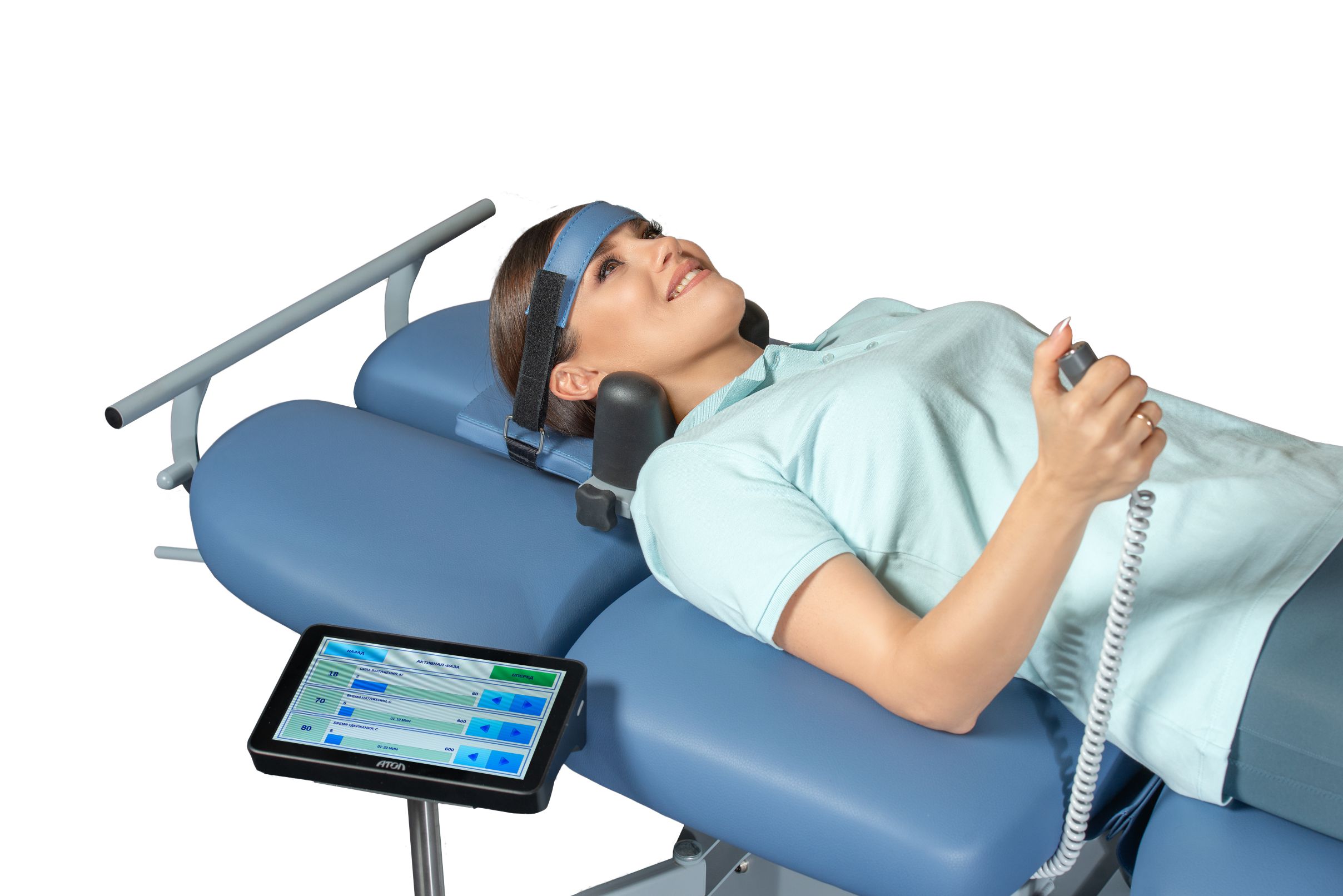 - Вытяжение шейного отдела, с плавной регулировкой угла во фронтальной и сагиттальной плоскостях;