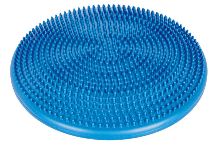 Латексная противовзрывная подушка. Надувная баланс-подушка изготовлена с 2 различными по жесткости поверхностями. Колючие поверхности обеспечивают хорошее сцепление. Надувной балансировочный диск размером 33 см. идеально подходит для балансировки и тренировки мышц, с постоянными микродвижениями, способствующими укреплению мышц.