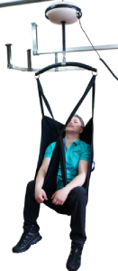 Подъемная система REHA крепится к потолочному рельсу и поднимает пациента из кровати. Далее пациент перемещается вдоль по рельсе и опускается в коляску. Таким же образом при помощи электродвигателя можно пересадить пациента из коляски в кровать.