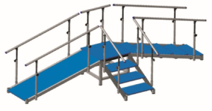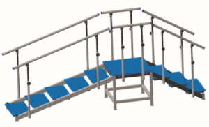 Конструкция состоит из базовой платформы, двух различных лестниц, с высокой или низкими ступенями и пандуса – для создания подходящей конфигурации в зависимости от места расположения тренажера, а также конкретных лечебно-реабилитационных программ.